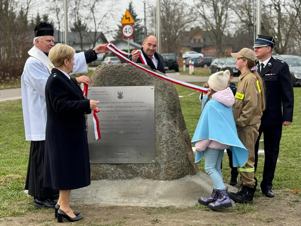 Uroczystość odsłonięcia tablicy, poświęcenia krzyża i pomnika na Skwerze Pamięci w Gocławiu