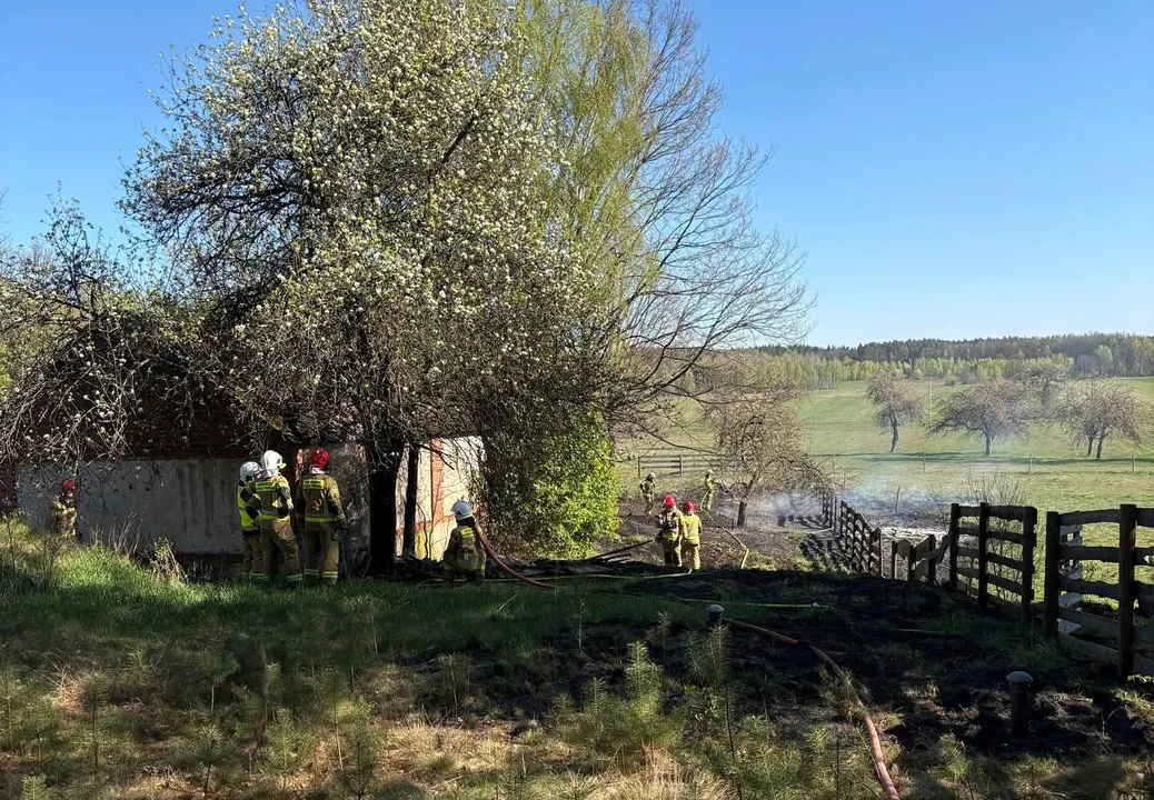 Poranny pożar w Łucznicy. Ogień zajął łąki i budynek