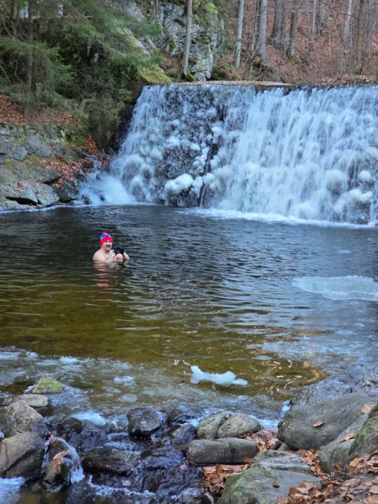 Pan Artur w czapce i krótkich spodenkach zdobył Śnieżne Kotły i Szrenicę. "Mamy w Miastkowie ludzi, którzy inspirują nawet zimą!"