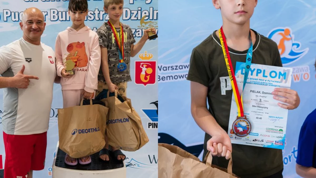 Bogusław, Dominik i Apolonia Pielakowie wzięli udział w zawodach odbywających się na pływalni Ośrodka Sportu i Rekreacji ,,Pingwin”, czyli XVIII Grand Prix o Puchar Burmistrza dzielnicy Bemowo. Zawody zgromadziły 222 zawodniczek i zawodników z 18 klubów.