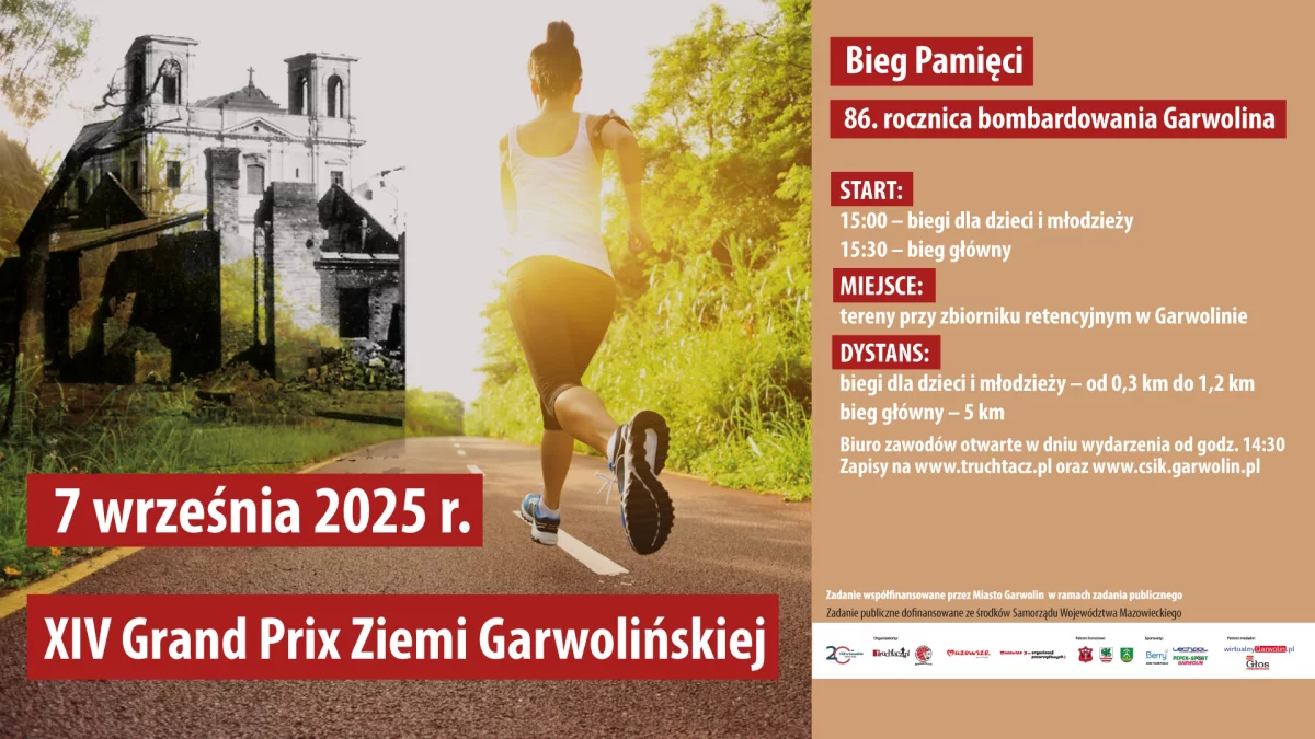 Najbliższy, trzeci bieg w ramach XIV Grand Prix Ziemi Garwolińskiej odbędzie się 7 września. Wyjątkowy nie jest tylko czas zawodów, ale także ich idea. Zawodnicy wezmą udział w Biegu Pamięci, który ma przypominać o wydarzeniach z czasów II wojny światowej, a w szczególności bombardowaniu Garwolina.