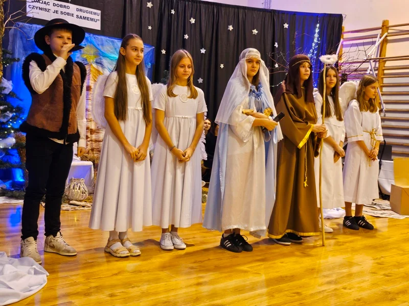 Publiczna Szkoła Podstawowa Nr 1 wraz z Miejskim Ośrodkiem Pomocy Społecznej co roku organizują spotkanie opłatkowe dla mieszkańców naszego miasta, którzy nie mają z kim spędzić tego magicznego dnia. Dzięki przedstawionym jasełkom można było poczuć klimat zbliżających się świąt Bożego Narodzenia.