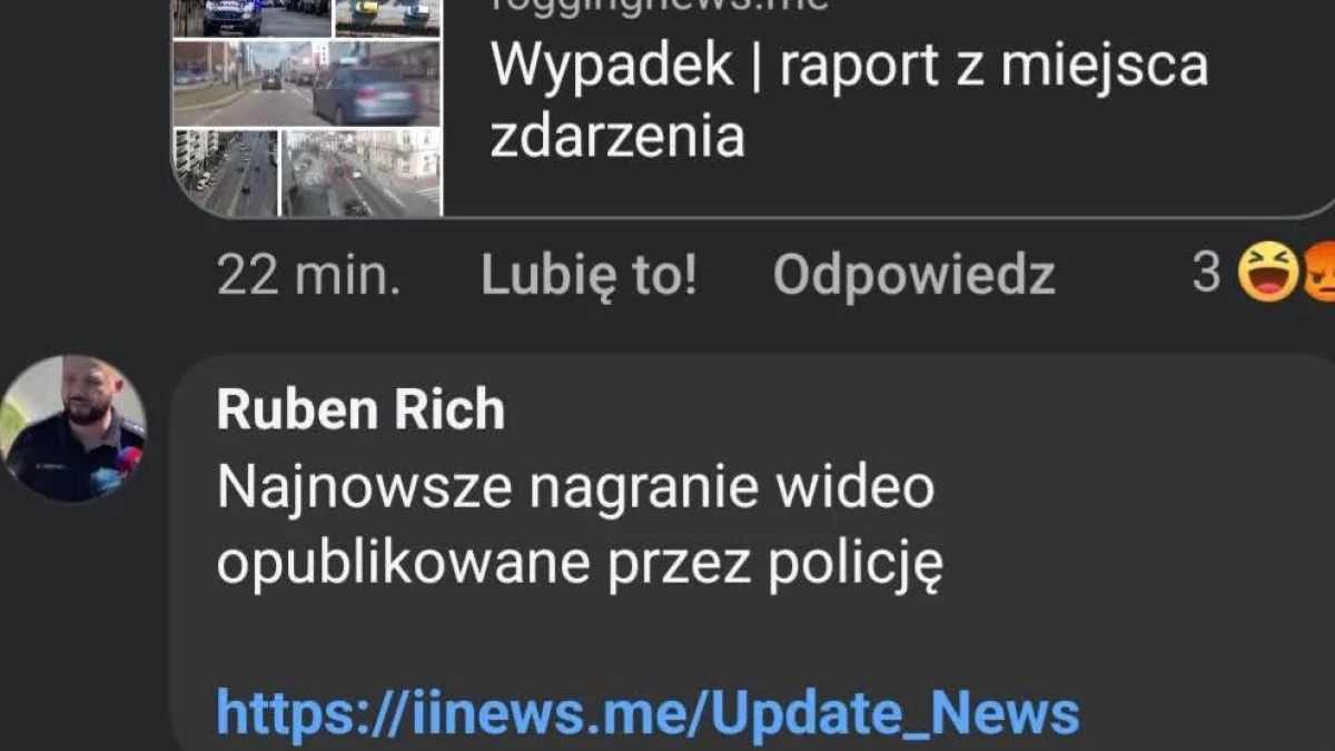 - Jak zapewne zauważyliście, pod artykułami i postami dotyczącymi katastrof, wypadków i innych zdarzeń drogowych w serwisie Facebook pojawiają się komentarze dodawane przez boty, które zachęcają do kliknięcia w podejrzane linki. Najczęściej zawierają one informację o rzekomej możliwości obejrzenia nagrania z wypadku. Jest to pułapka, która może stanowić poważne zagrożenie dla bezpieczeństwa Waszych kont i danych osobowych.