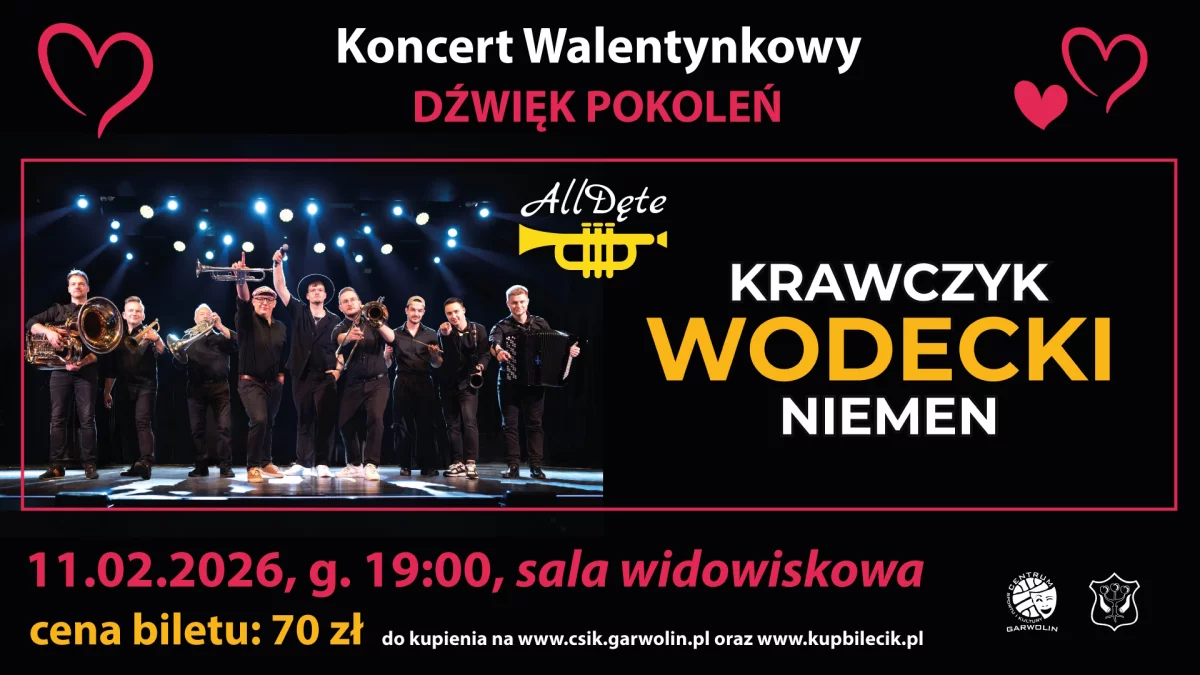 Koncert odbędzie się w sali kinowej 11 lutego o godzinie 19:00. Bilety do nabycia na www.csik.garwolin.pl oraz na stronie www.kupbilecik.pl