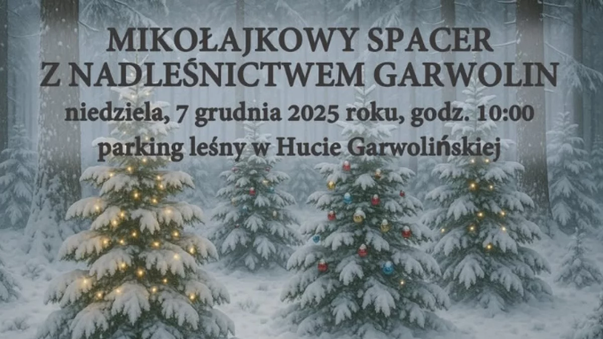 Piechurzy wyruszą w niedzielę7 grudnia o godzinie 10:00 z parkingu leśnego w Hucie Garwolińskiej.