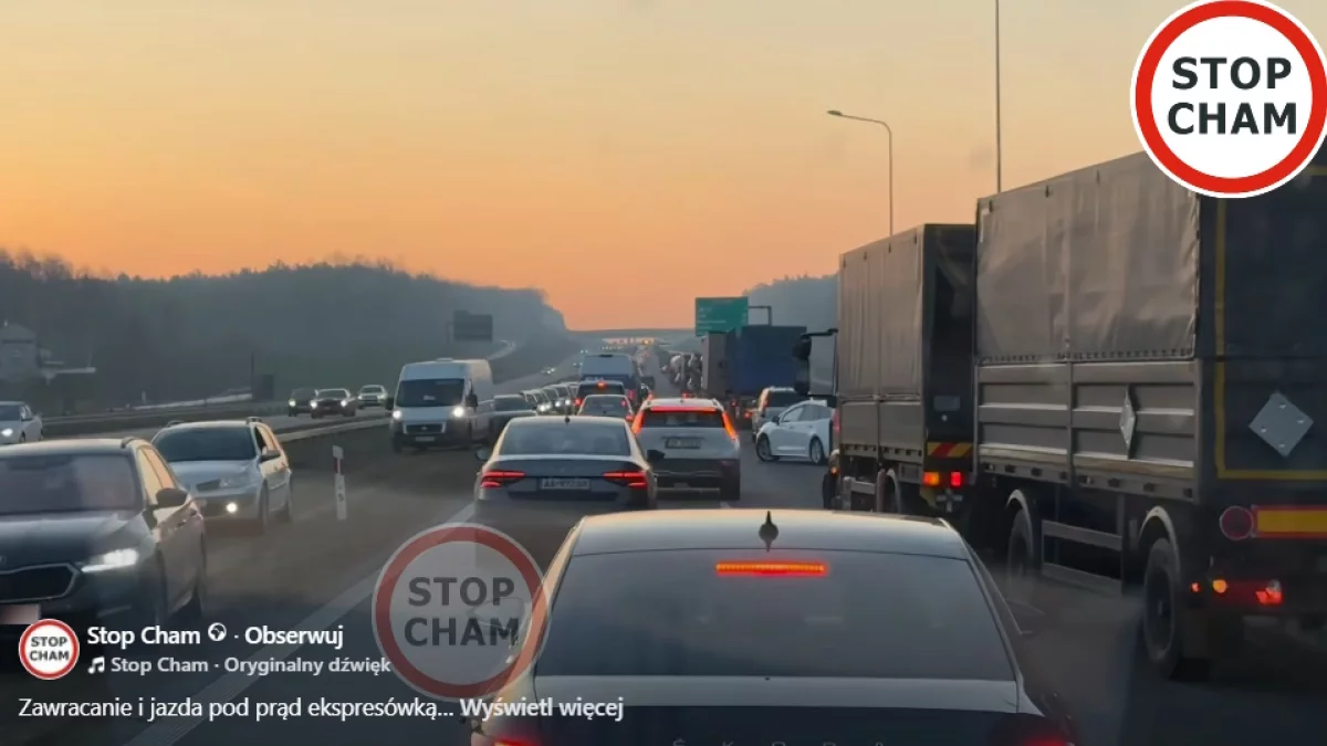 Komenda Powiatowa Policji w Garwolinie informuje, że posiada wiedzę o niebezpiecznych manewrach kierowców, do których doszło we wtorek rano, 16 grudnia, na trasie ekspresowej S17. Na nagraniu opublikowanym w sieci widać, jak część kierujących, stojących w korku, zawraca przez pas zieleni i podejmuje jazdę pod prąd.