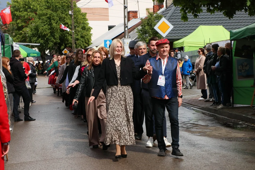 Choć na tegorocznym Festiwalem Kultury i Tradycji Garwolina długo wisiały czarne chmury, na kilka minut przed rozpoczęciem wydarzenia niebo się rozpogodziło i dobra pogoda została już do końca. Żeby tradycji stało się zadość, na początek zatańczono poloneza, w którym wzięli udział przedstawiciele władz miasta, młodzież szkolna, zespoły artystyczne, seniorzy – kto chciał, mógł dołączyć do tanecznego korowodu.