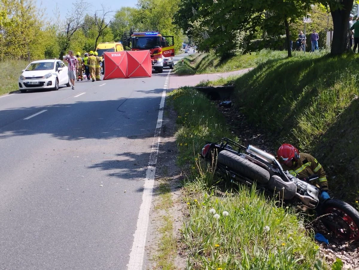 39-letni motocyklista z poważnymi obrażeniami ciała został przewieziony do szpitala. Policjanci ustalili, że kierowca jednośladu nie posiadał uprawnień do kierowania tego typu pojazdami. Dziś przekazano informację o jego śmierci.