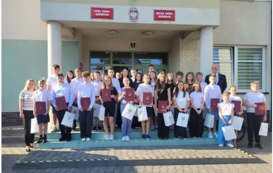 Wójt, doceniając trud i zaangażowanie młodych mieszkańców, nagrodził stypendiami uczniów, którzy wyróżnili się w następujących kategoriach: