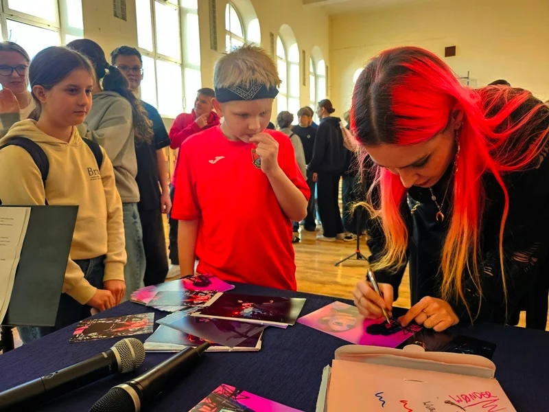 Artystce towarzyszył muzyk Antoni Mitura, absolwentowi Jedynki. Spotkanie odbyło się w ramach projektu #Karierabezbarier IBE PIB - Instytut Badań Edukacyjnych.