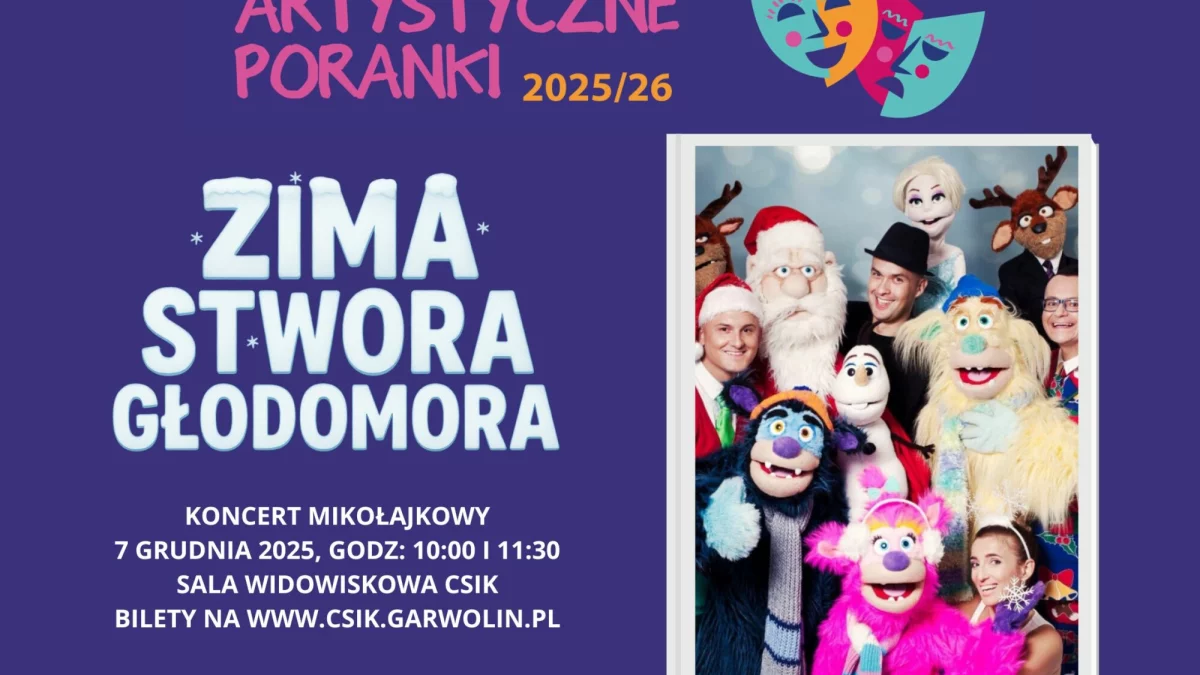 W repertuarze znajdą się polskie kolędy, zimowe hity i piosenki uwielbiane zarówno przez dzieci, jak i dorosłych – m.in. Zima lubi dzieci, Pada Śnieg czy Ding-dong. „Zima Stwora Głodomora” to nie tylko muzyka – to także cenna lekcja o radości dzielenia się i wartości rodzinnego ciepła, które przewyższają nawet najdroższe prezenty mikołajkowe.