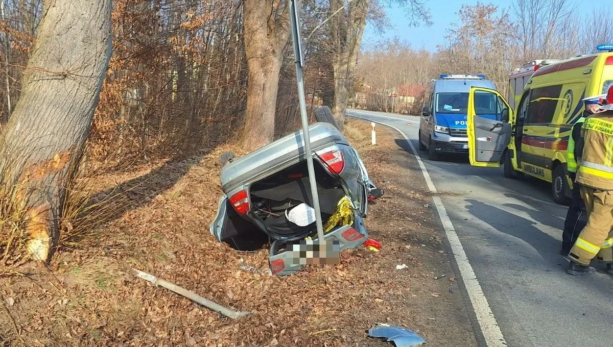 Na miejscu policjanci wstępnie ustalili, że 33-letni kierowca mitsubishi prawdopodobnie na skutek napadu padaczkowego stracił panowanie nad pojazdem. Zjechał na przeciwległy pas ruchu, wypadł z drogi, uderzył w drzewo i dachował. Samochodem podróżowały jeszcze trzy osoby w wieku 34, 25 i 24 lata. Wszyscy uczestnicy zdarzenia zostali przetransportowani do szpitala.