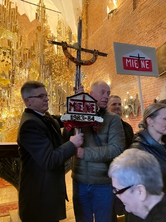 We mszy świętej kapłani modlili się za zasłużonych Pomorzan związanych z obroną krzyża świętego w szkole w Miętnem w latach 1983-1984. Eucharystii przewodniczył arcybiskup Tadeusz Wojda, przewodniczący Konferencji Episkopatu Polski i metropolita gdański. W swoim powitaniu mówił: Dzisiaj, w tą piątą niedzielę Wielkiego Postu, mamy szczególną okazję by gościć zarówno biskupów, jak i przedstawicieli z diecezji siedleckiej, a w sposób szczególny z miejscowości Miętne, gdzie w 1984 roku młodzież ze szkoły stanęła w obronie krzyża (...). Właściwie ponad 200 osób, którzy dzisiaj przyjechali, upamiętniając tamto wielkie wydarzenie i zawieszając czy pozostawiając w tej bazylice Świętej Brygidy krzyż. Ta bazylika słynie z tego, że tych krzyży już jest więcej. I tak jak młodzież wówczas modliła się i śpiewała, cytując Adama Mickiewicza: "Tylko pod tym krzyżem, tylko pod tym znakiem - Polska jest Polską, a Polak Polakiem", tak dzisiaj chcemy podziękować Bogu za to piękne świadectwo obrony krzyża.