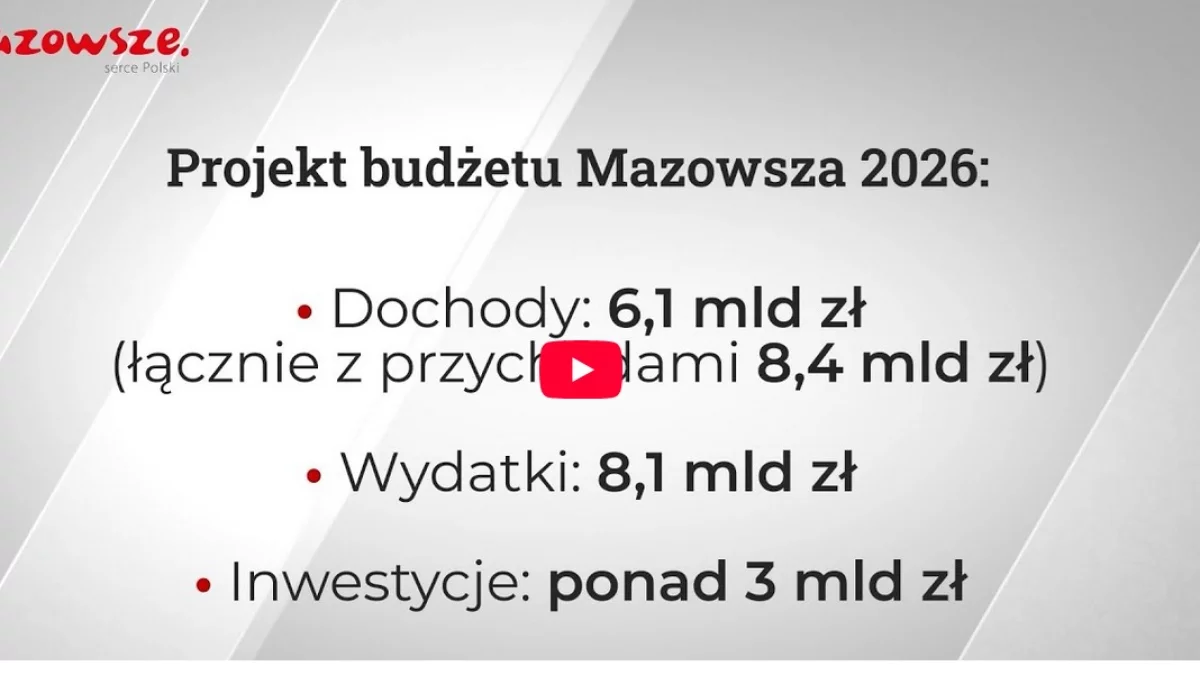 Z powiatu garwolińskiegoW tym wydaniu programu informacyjnego samorządu województwa mazowieckiego "Informacje z Mazowsza" mówimy m.in. o pierwszych obradach sejmiku Mazowsza w Płocku i pracach nad przyszłorocznym budżetem, specjalistycznym sprzęcie dla kolejnych jednostek OSP, nagrodach dla cyfrowych szkół, wzroście liczby zakażeń wirusem HIV, siedmiu obrazach Fangora w Mazowieckim Centrum Sztuki Współczesnej Elektrownia oraz pieniądzach na przydomowe oczyszczalnie ścieków.
