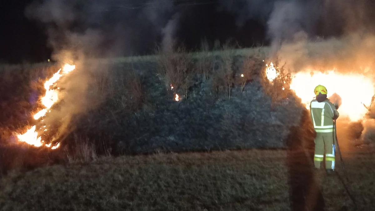 Na miejsce zdarzenia skierowano zastęp GBA z OSP Chromin. Po przybyciu na miejsce potwierdzono obecność ognia, który objął suchą roślinność wzdłuż nasypu.