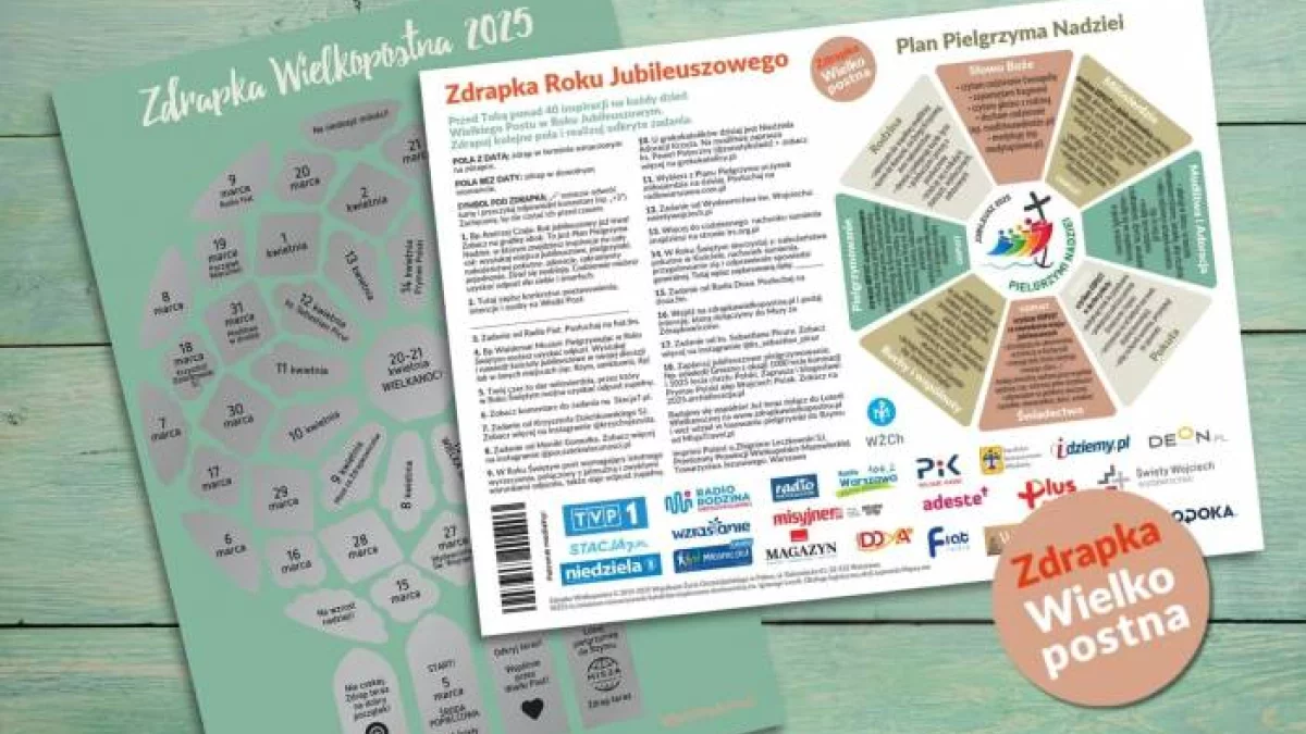 - Przed Tobą ponad 40 inspiracji na każdy dzień Wielkiego Postu w Roku Jubileuszowym. Zdrapuj kolejne pola i realizuj nowe zadania. Pola z datą zdrap w terminie oznaczonym na zdrapce. Pola bez daty zdrap w dowolnym terminie. Symbol ">" pod zdrapką oznacza "odwróć kartę i przeczytaj odpowiedni komentarz (np. > 3)". Zachęcamy, by nie czytać ich przed czasem. Wśród pól zdrapki jest także jedno, pod którym można wylosować... pielgrzymkę do Rzymu od Misja Travel.pl. - ogłasza parafia.