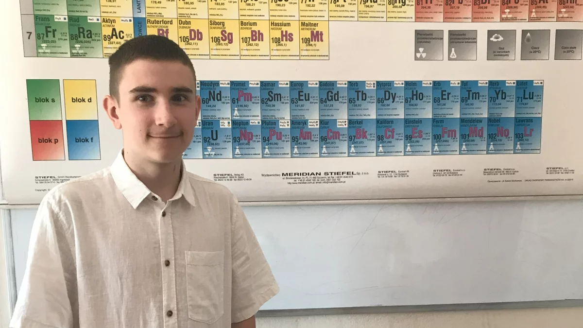 "Od najmłodszych lat interesuję się chemią. W domu mam sporo książek związanych z eksperymentami i ciekawostkami dotyczącymi zarówno chemii jak i fizyki. Lubię też oglądać programy naukowe. Poza przedmiotami ścisłymi interesuję się też historią i geografią. Z tych przedmiotów również brałem udział w konkursach i doszedłem do etapu rejonowego. Udział w konkursie z chemii wspominam bardzo miło. To ciekawe doświadczenie. Najbardziej stresowałem się na etapie szkolnym, mniej na etapie rejonowym, a najmniej na etapie wojewódzkim. Cieszę się, że mogłem wziąć udział w konkursie i zostałem finalistą. Zamierzam iść do liceum ogólnokształcącego i możliwe, że zdecyduję się na profil chemiczny." - mówi Patryk Żaczek, który wywalczył tytuł finalisty Wojewódzkiego Konkursu Przedmiotowego z Chemii.