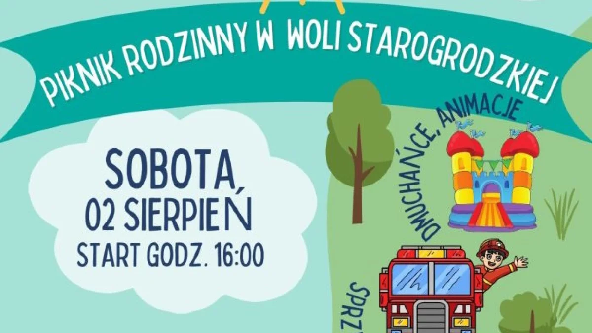 Gmina Parysów zaprasza wszystkich mieszkańców do wzięcia udziału w Pikniku Rodzinnym, który odbędzie się w sobotę 2 sierpnia 2025 r. o godz. 16:00 na boisku przy Szkole Podstawowej w Woli Starogrodzkiej.