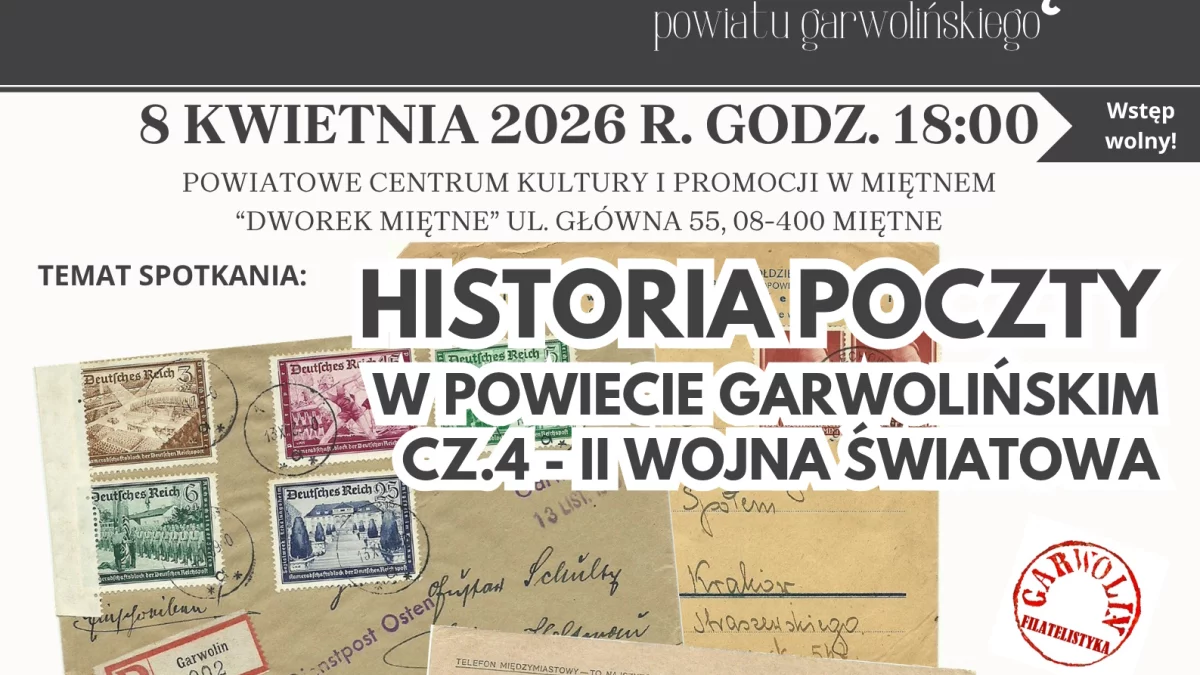 Tematem kwietniowego spotkania będzie kolejna część cyklu poświęconego historii poczty w powiecie garwolińskim. Tym razem uczestnicy skupią się na okresie II wojny światowej.