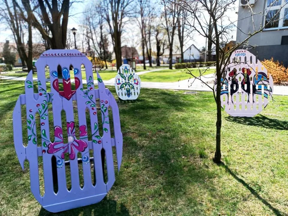 Dzięki współpracy pracowników Referatu Gospodarki Komunalnej oraz Gminnego Domu Kultury, plac przed Urzędem Gminy zyskał wyjątkowy wygląd. Ustawiono tam ogromne, efektowne pisanki, które przyciągają wzrok i wprowadzają w radosny nastrój.