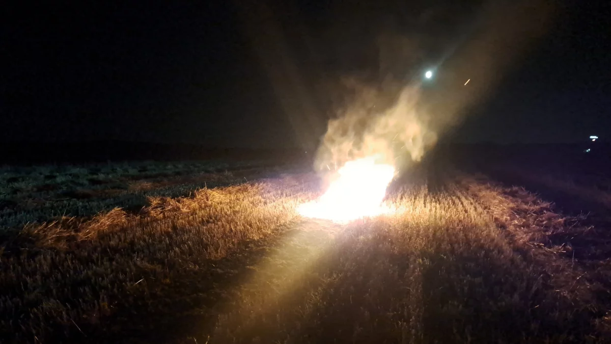 Płonęła słoma rozrzucona na ściernisku. Ogień był widoczny z dużej odległości, jednak obejmował stosunkowo niewielką powierzchnię. Akcja strażaków polegała na szybkim opanowaniu ognia, który – ze względu na suchą roślinność i porę dnia – mógł łatwo rozprzestrzenić się na większy obszar.