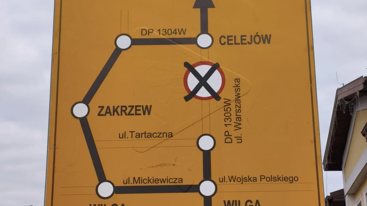 Zamknięty zostanie odcinek drogi w rejonie ul. Warszawskiej (DP 1305W), co potwierdzają również ustawione oznakowania objazdowe. Ruch w tym miejscu będzie całkowicie wstrzymany – nie przewidziano przejazdu nawet dla ruchu lokalnego.